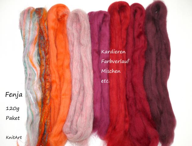 Faserpaket " Fenja Orange Rot " FARBVERLAUF Kardieren MISCHEN etc.