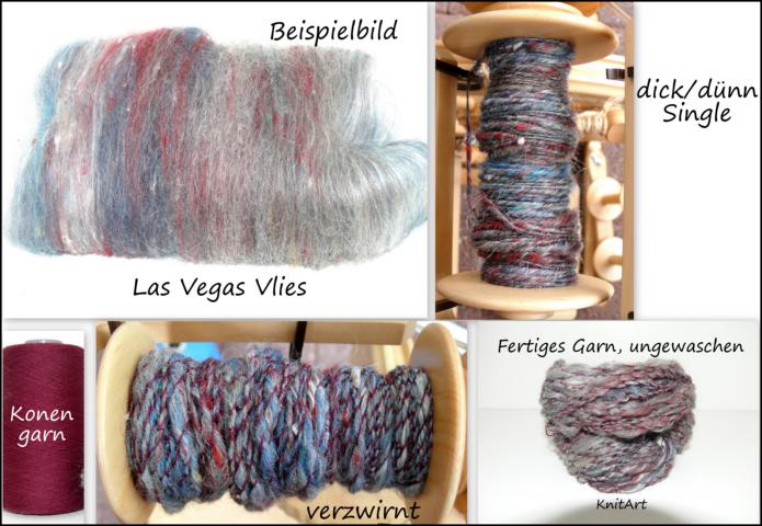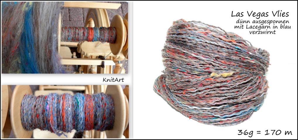 Bei meinen inzwischen bekannten * Las Vegas * Vliesen werden Faserstücke aus meiner Restekiste kardiert.