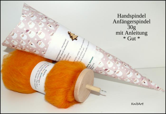 Kopfspindel - Hochwirtelspindel - Handspindel 1 Stück plus 20g Batt, liebevoll handkardiert Holz: Buche Holz: Naturbelassen Gewicht: 30g Eine Anfägerspindel mit einem guten Anfägergewicht, welche ich gerne empfehlen mag, denn sie ist zwar einfach, aber auch einfach gut. Auf Wunsch kann diese bemalt, geölt, lasiert oder auch lackiert werden, muss aber nicht.