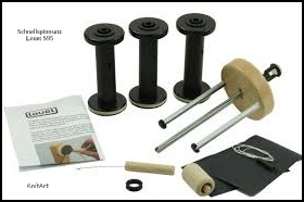 Foto 2 und 3 zeigen: Den Schnellspinnsatz, welcher auf Wunsch hinzu gekauft werden kann, sowie die original Tasche, welche wir auf Wunsch gerne bestellen.