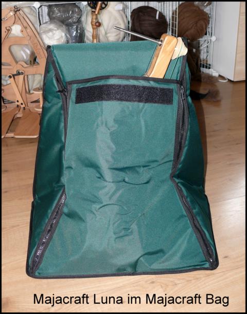 Es passen auch die Jumbo-Spulen und der Aura-Flyer für voluminöse Garne und Kunstgarne oder zum Verzwirnen größerer Garnmengen auf das Rad. Obwohl Kunstgarne nicht die Hauptstärke der Luna sind, da es, genau wie die anderen Majacraft Räder, Scotch-Spannung verwendet, können Sie damit auf jeden Fall bequem eine Spule voller Kunstgarn füllen, wenn Sie Lust dazu haben!
