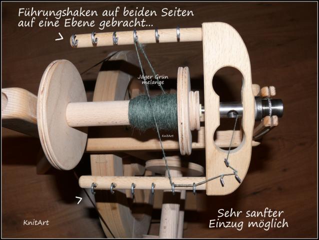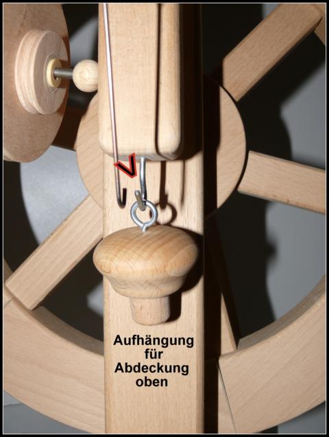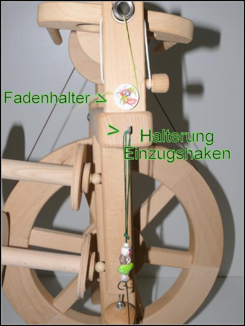 2.) Drei Umlenkhaken oben auf dem Spinnflügel.