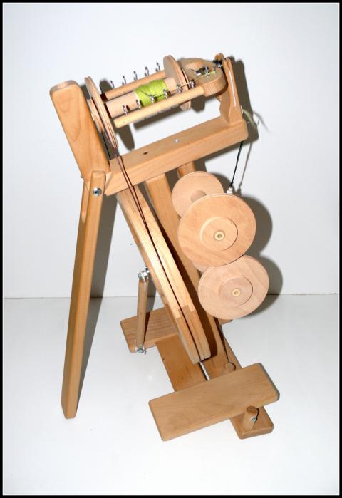 Das Vollholz-Spinnrad ist schnellstens aufgebaut und mittels verstellbarem Bein flott zum Spinnen eingerichtet. Es ist handlich und sehr gut für unterwegs mitnehmbar,