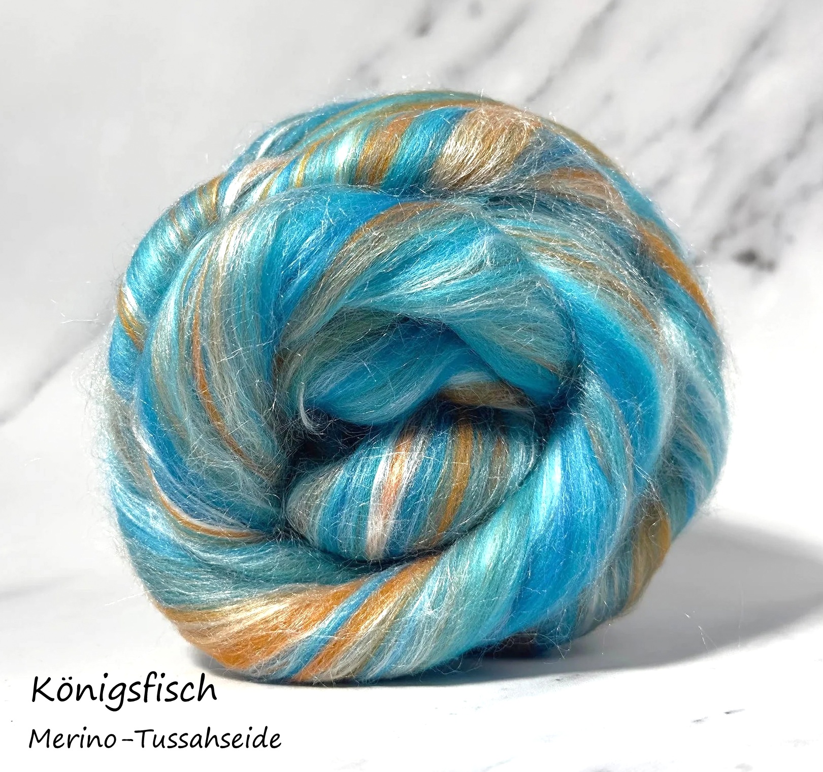 NEU Königsfisch, Merino - Tussahseide, Türkis